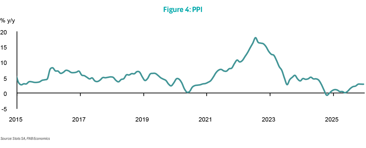 Producer inflation held at 2.9% y/y in December, unchanged from November. On a monthly basis, producer prices increased by 0.2% following a flat outcome previously. Food products, beverages, and tobacco were the biggest contributors to headline inflation, while notable increases also emerged in categories such as furniture and other manufacturing. Overall, producer inflation averaged 1.5% in 2025, down from 3.1% in 2024, reflecting a moderation driven largely by lower petroleum-related product prices, including diesel and petrol. Meanwhile, producer food inflation averaged 3.5%, slightly below the 3.7% average recorded in 2024.