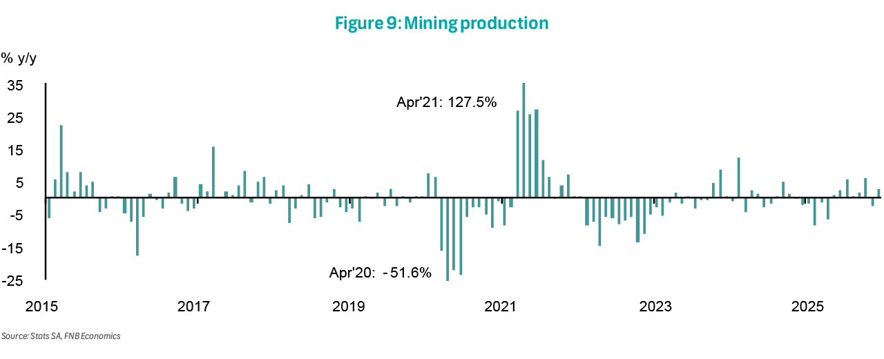 Also on Thursday, mining production data for January will be released. Mining production (not seasonally adjusted) expanded by 2.5% y/y in December, rebounding from a 2.4% decline in November. Seasonally-adjusted mining output declined by 1.2% m/m, following a 5.4% contraction in November. The largest positive contributors were iron ore and manganese ore, while PGMs and coal were the largest detractors. Overall, mining output declined by 0.5% q/q in 4Q25, suggesting that the mining sector dragged GDP growth in the final quarter of 2025.